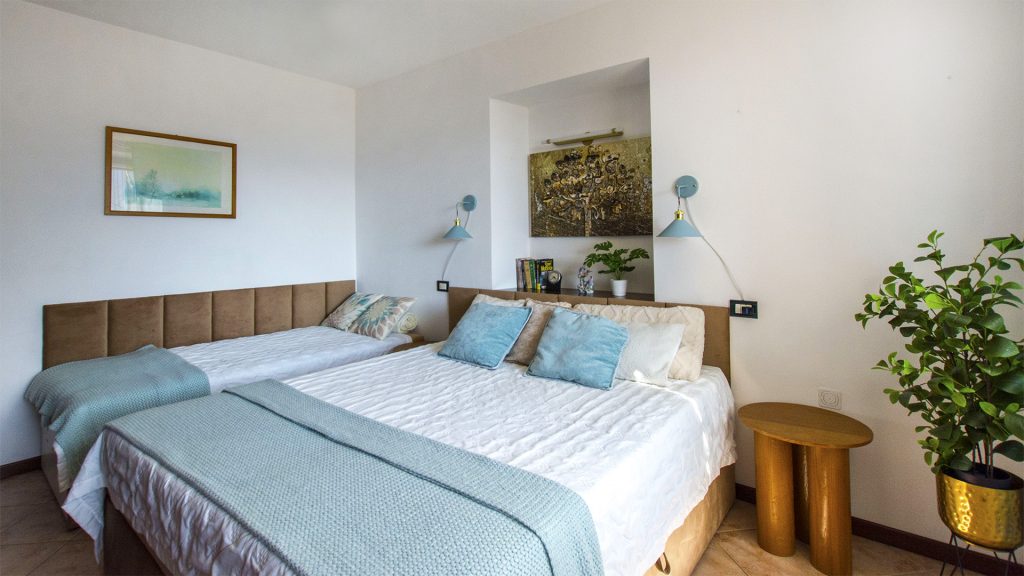 Schody wejściowe prowadzą na werandę, z której roztacza się przepiękny widok na górę Corna Trentapassi, jezioro oraz szlacheckie wille wioski.